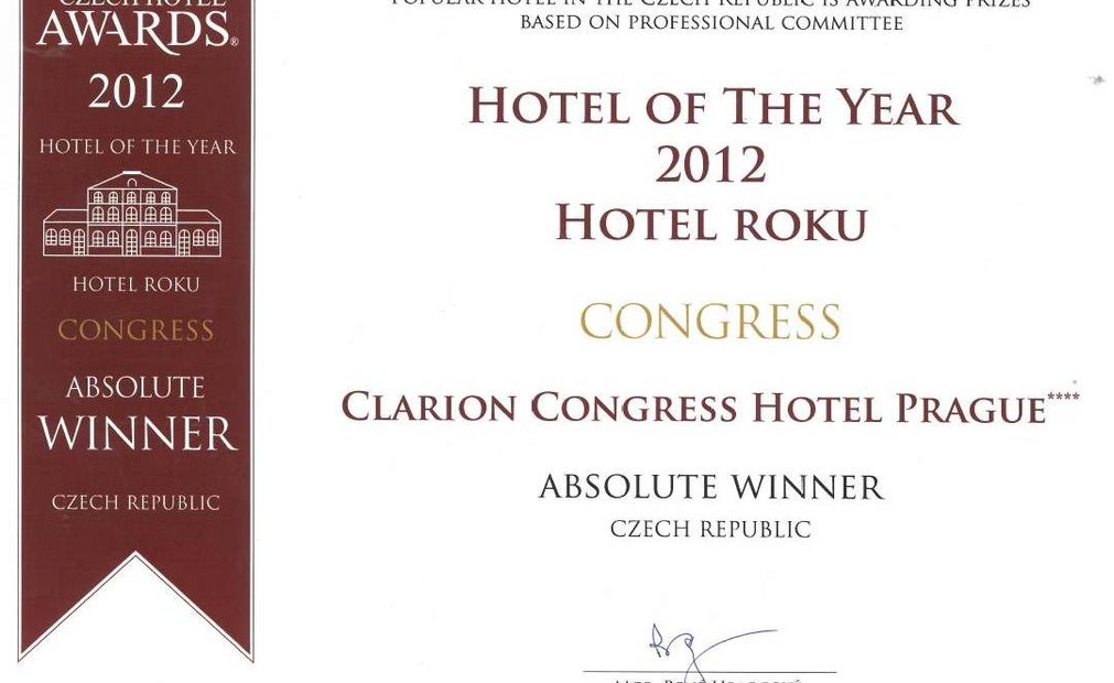 Clarion Congress Hotel Prague získal ocenění v rámci prvního ročníku soutěže Hotel roku. Trofej pro vítěze v kategorii kongresových hotelů, o které rozhodovala odborná porota složená ze zástupců významných firem pořádajících kongresy, převzal ředitel vysočanského Clarionu Miroslav Bukva. A úspěch slavil i Clarion Congress Hotel Ústí nad Labem...