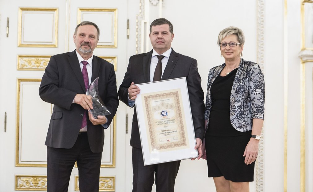 The trend in supporting corporate social responsibility, thanks to which many international and domestic companies take social, cultural, and environmental aspects into account in conducting their business, has also taken root in the Ostrava region. Most recently, the Clarion Congress Hotel Ostrava received an award. The hotel’s Director, Radim Beneš received the National Corporate Social Responsibility Award for 2015 from the President of the Trade and Tourism Association, Marta Nováková and MP Pavel Kováčik at a ceremony held at the Spanish Hall at Prague Castle. The gala evening was held under the auspices of Prime Minister Bohuslav Sobotka and was attended by President Miloš Zeman. Tenor Štefan Margita sang for the winners during the awards ceremony.